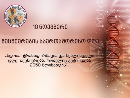 10 ნოემბერი მეცნიერების საერთაშორისო დღე, მშვიდობისა და განვითარებისთვის 2025 წელს აღინიშნება თემით: „ნდობა, ტრანსფორმაცია და ხვალინდელი დღე: მეცნიერება, რომელიც გვჭირდება 2050 წლისთვის“. საქართველოს მეცნიერებათა ეროვნული აკადემია ტრადიციულად ულოცავს ყველა მეცნიერს ამ დღეს და უსურვებს ნაყოფიერ მოღვაწეობას.